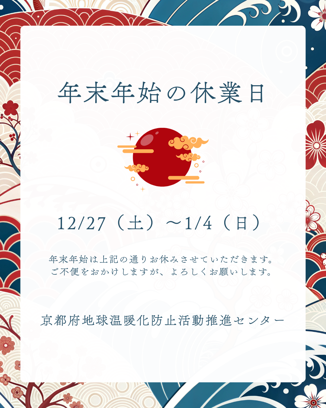 年末年始の休業日につきまして、下記のとおりとさせていただきます。