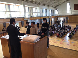 毎年高学年がCO2ゼロチャレンジに家族の方と一緒に取り組んでくれています。今年はみんなのがんばりにより、イワタ賞をいただくことができました。