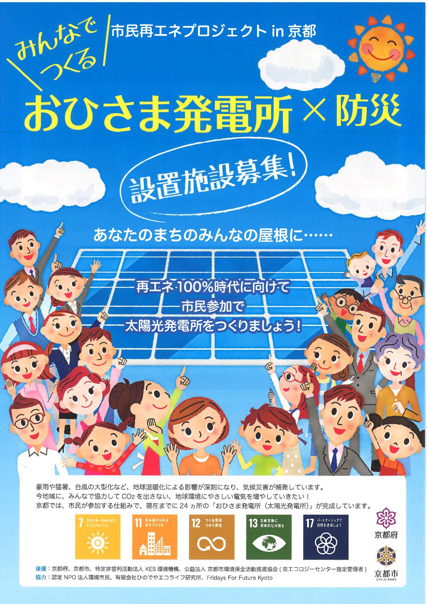 市民再エネプロジェクトin京都とは 温暖化を防止するためさまざまな活動を続けてきた団体が、市民共同発電所をさらに広げようと立ち上げたプロジェクトです。この度、2050 年カーボンニュートラルに向けて、再生可能エネルギーを … 続きを読む 市民再エネプロジェクトin京都