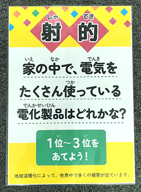 たくさん電気を使う家電はどれかを選んで、的を狙いうちします。イベントで大活躍